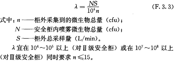 F.3.3 安全柜隔離系數λ按下式評價: